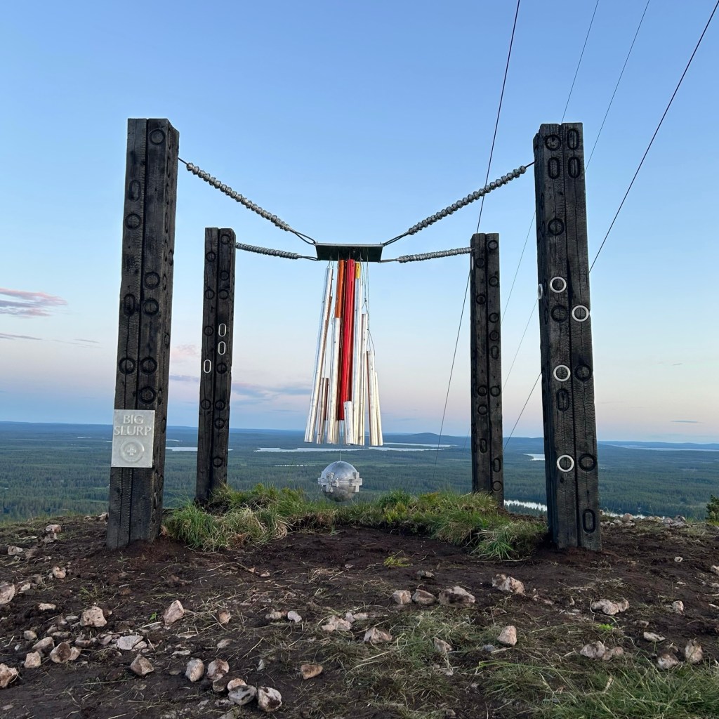 BIG SLURP, 2024, Charred pine wood, cast aluminium, 300 x 300 x 300cm, Rukatunturi, Finland